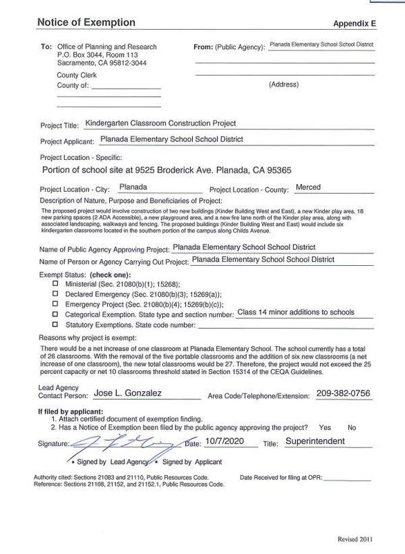 PES Kinder Construction RFP Please follow this link to access the RFP for the construction project on the Kindergarten wing at Planada Elementary School